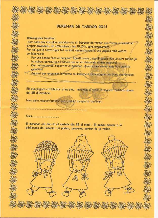 L’AMPA us convida a un berenar de pares, mares, nenes i nens de Parvulari i de 1 r i 2n de Primaria per tal de conèixer-nos millor.