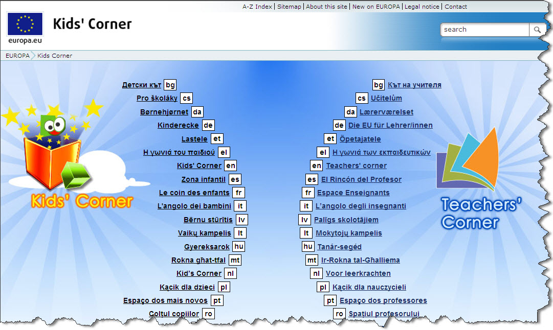 És per això que la Comissió ha estrenat una pàgina web per a nens sobre la UE: Kids’ Corner. Nens d’arreu d’Europa I de més enllà ara tenen accés en línia a jocs, endevinalles I informació sobre la UE i els diferents països que hi pertanyen. Amb aquesta nova pàgina web la UE, per primer cop, ofereix els nens informació sobre la UE i els seus propis drets, especialment orientat a ells en un estil que comprenen.