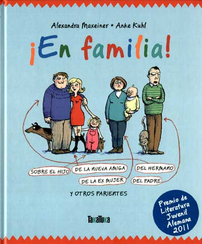 En famíla!, de l’editorial Takatuka, ens presenta com és la família. Però és clar, no hi ha un model únic de família. La mirada abarca des de families monopartenals fins a families nombroses, families patchwork, ens presenta les avantatges i desaventatges de ser fill únic o de tenir germans; families amb dos pares o dues mares, families binacionals, mares de lloguer…, i també hi ha un espai per a les viudes, per a nens orfes, nens adoptats o que viuen en una casa d’acollida infantil… inclús per a les families que no tenen fills!