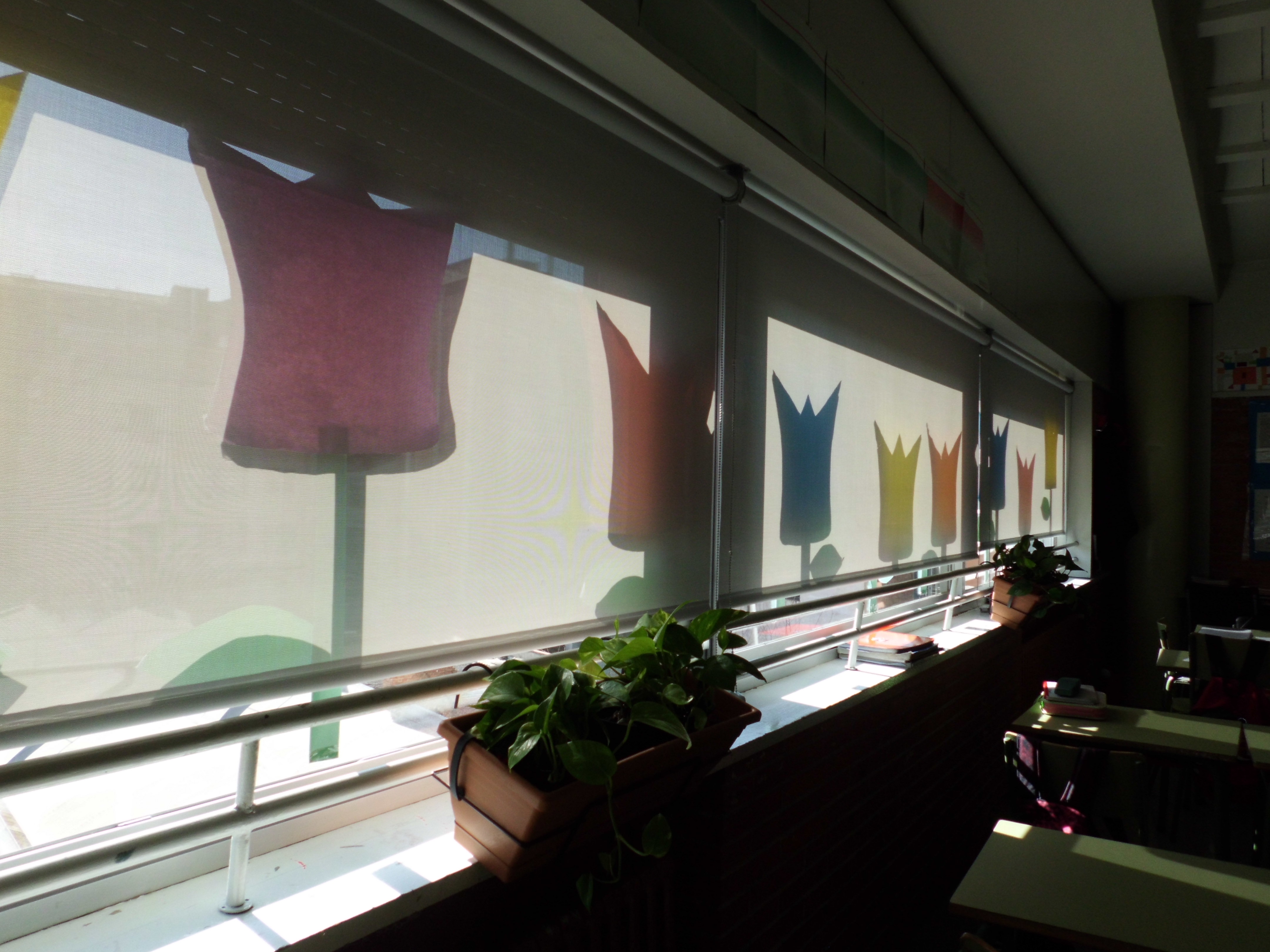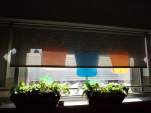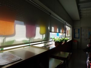 Hem instal·lat uns estors a les finestres d’aquestes aules que fan que el sol no impacti tan directament i així poguem tenir les finestres obertes quan la calor apreti. Són uns estores especials que ens protegeixen del sol, però sense renunciar a les vistes i a la claror de l’exterior