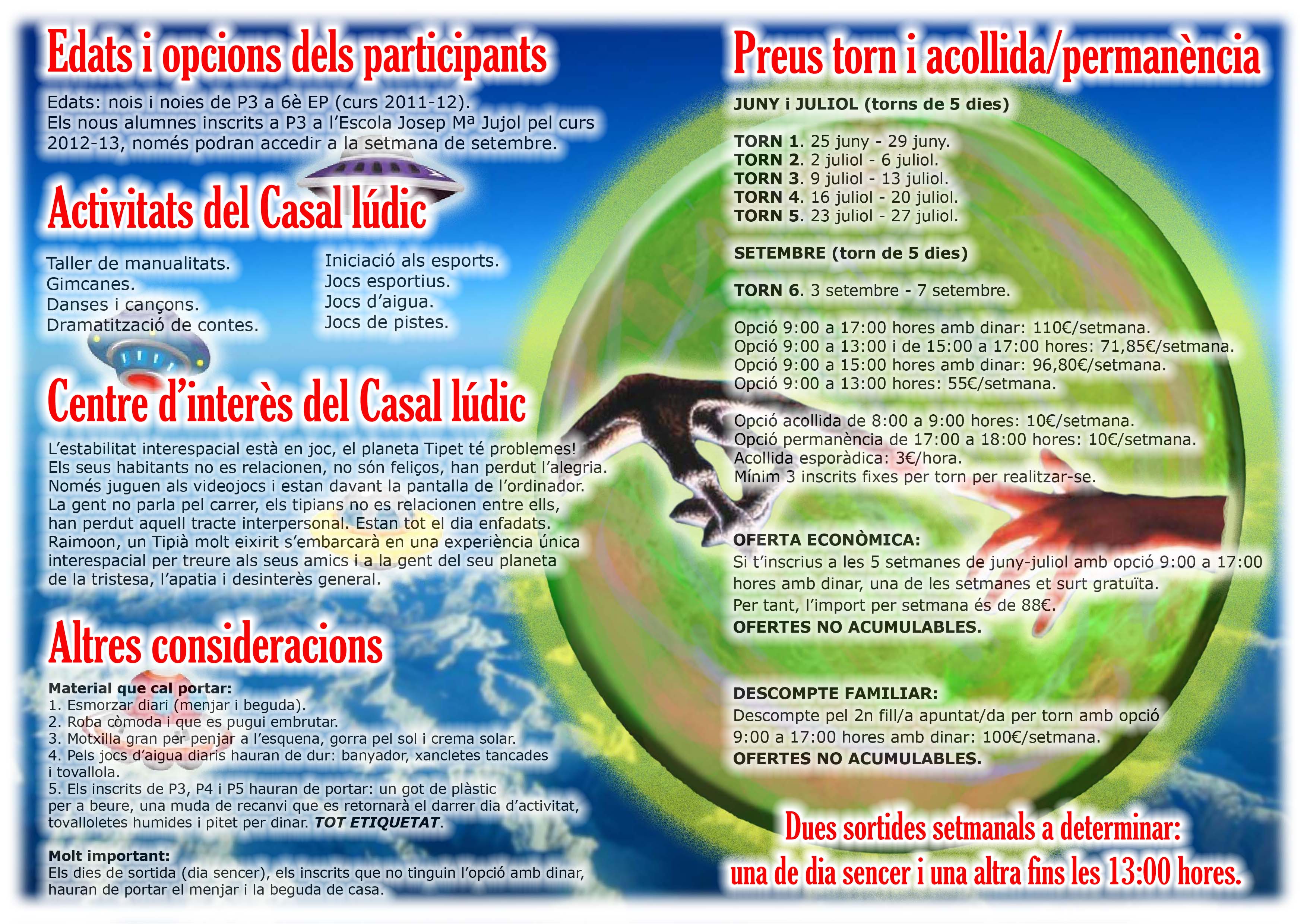 Presentació dels monitors: primer dia de casal, dilluns 25 de juny a les 16:30h.