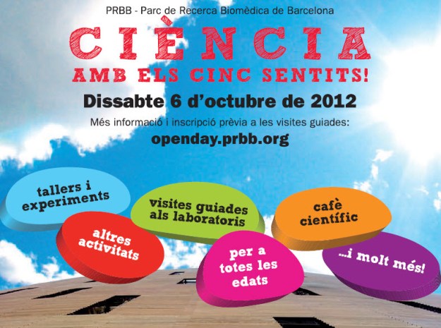 I el dissabte 6 d’octubre Jornada de Portes Obertes 2012. El Parc de Recerca Biomèdica de Barcelona obre les portes i des de les 10 del matí fins les 7 del vespre. Els científics i tot el personal del PRBB dedicaran el dia, de forma totalment voluntària, a explicar el que fan, com ho fan i on ho fan. Jugareu amb la ciència, xerraran dels projectes en els que treballen, us ensenyaran els laboratoris i els equips que fan servir.
