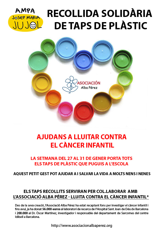 Els taps recollits serviran per col.laborar amb l’Associació Alba Pérez de lluita contra el càncer infantil.