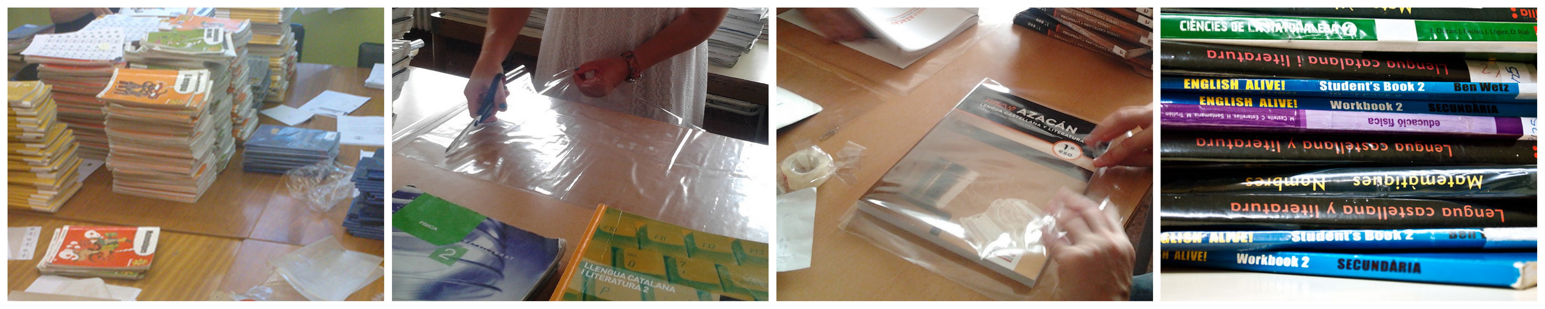Es tracta d’aprofitar els llibres en bon estat que s’han utilitzat en un any i reutilitzar-los a l’any següent pels nous nens que cursaran aquest curs. Aquesta reutilització requereix que els llibres es conservin en bon estat i se’ls doni un bon ús. Els pares de forma organitzada gestionen l’adquisició dels llibres que queden en propietat de l’escola i el mecanisme d’utilització és decidit pels docents.