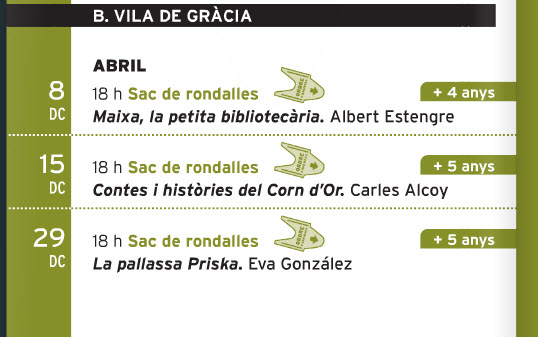 Contes a la Biblioteca Vila de Gràcia. Estigueu atents, perquè ben apropet del cole, a la biblioteca, molt sovint fan contacontes molt, molt recomanables!