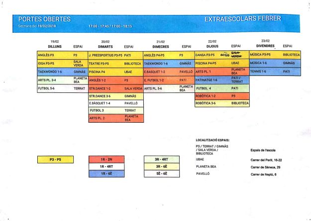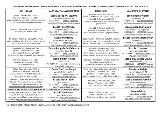 Aquí teniu els horaris de les jornades de portes obertes a totes les escoles de Gràcia: