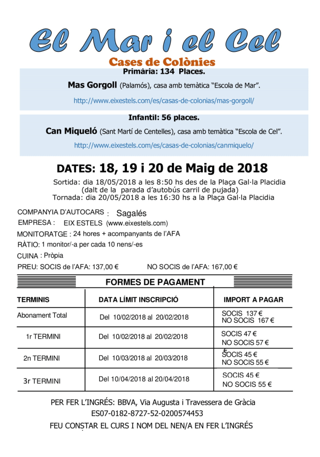 Podeu descarregar el pdf amb tota la informació: DÍPTIC COLÒNIES 2018