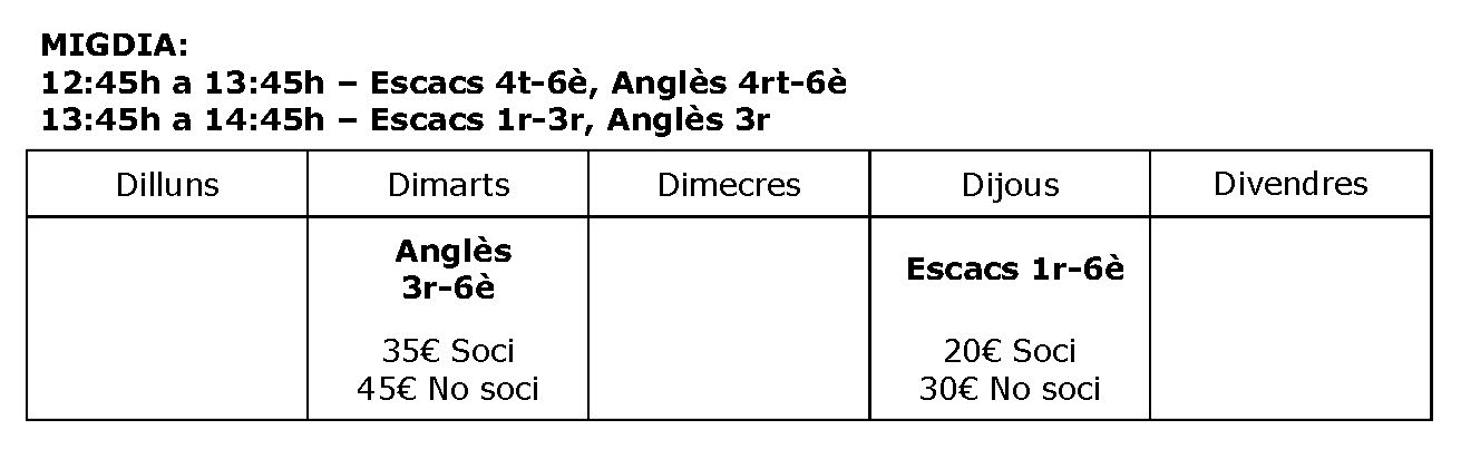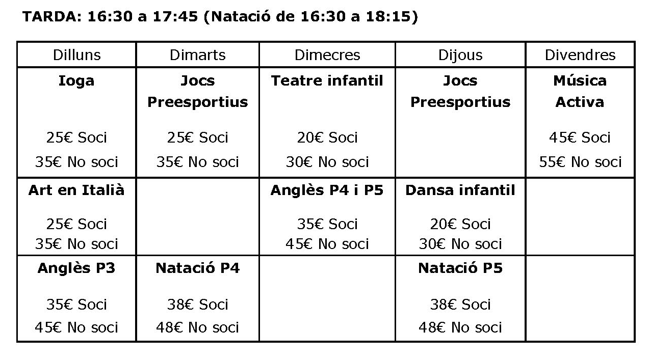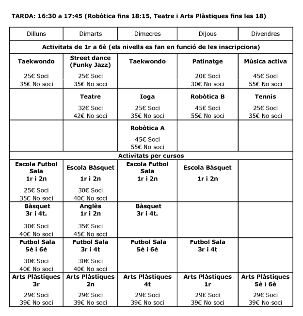 La setmana vinent repartirem el butlletí. Les inscripcions comencen el 6 el juny!