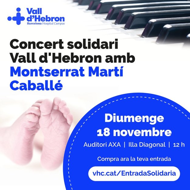 Ens plau informar-vos que el pròxim 18 de novembre la Sra. Montserrat Martí Caballé oferirà un concert solidari amb el Vall d’Hebron Barcelona Hospital Campus per a la creació del nou Centre de Neonatologia Avançada. El concert tindrà lloc a l’Auditori AXA de Barcelona, a les 12.00 hores, i agraïm molt a la Sra. Martí que ho faci de forma totalment altruista.