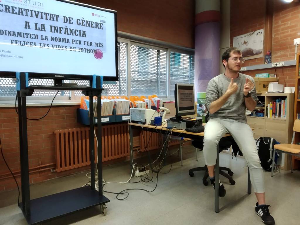 L’activista transfeminista Teo Pardo va impartir ahir una xerrada molt interessant on vam aprendre a distingir entre sexe, gènere, sexualitat i identitat de gènere… ens va explicar fins a quin punt algunes normes socials de gènere ens limiten a nosaltres i a les nostres criatures i com, en aquest context, és important abordar la creativitat de gènere dels infants obrint espais per què s’expressin com vulguin, sense fer-los sentir fora de lloc ni obligar-los a triar des de ben petits si són nens o nenes.