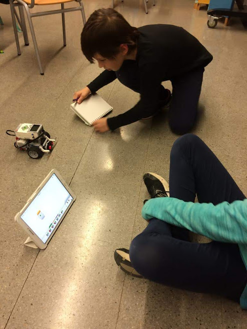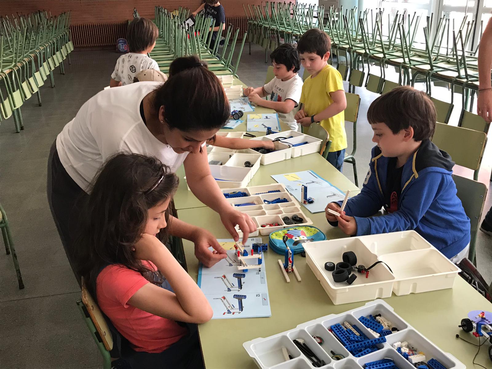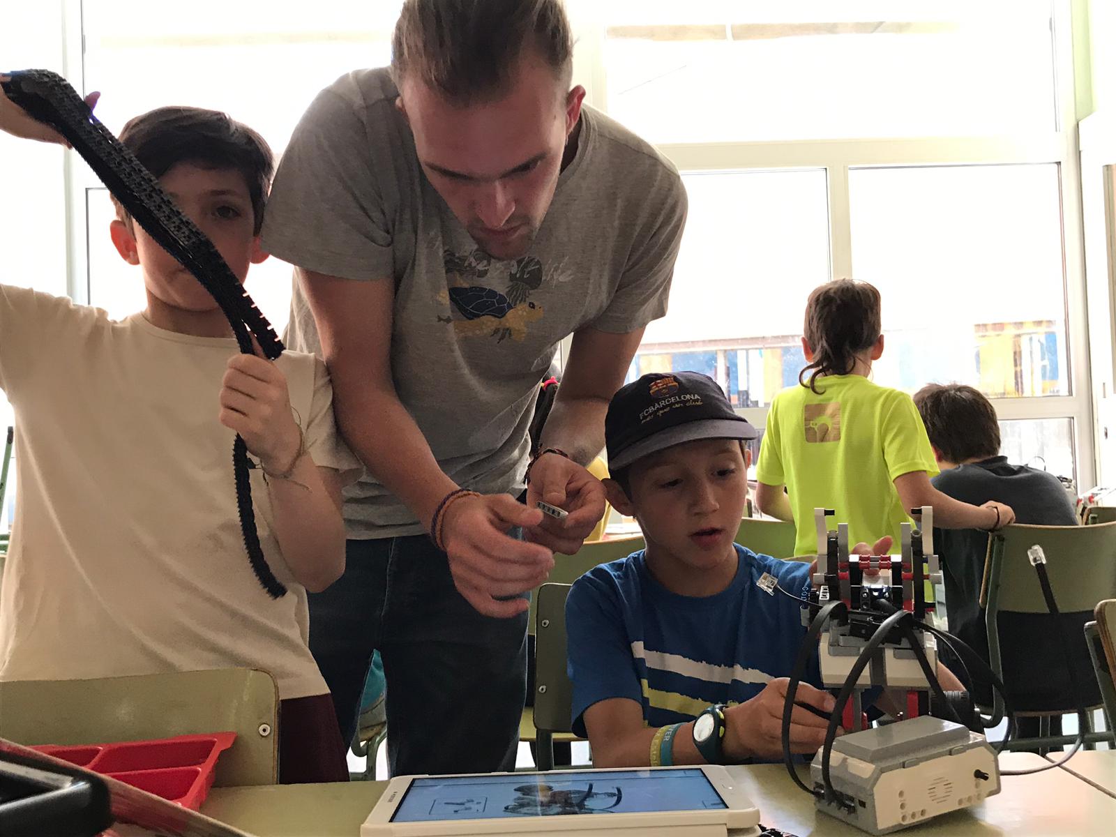 Amb els grans, hem passat de Màquines Motoritzades a LEGO Mindstorms, que ens ofereix més complexitat i varietat de peces i la possibilitat de poder-lo programar per fer funcionar els dos tipus de motors que hi ha i quatre diferents sensors. Per començar a entendre com funciona hem construït el robot base amb una palanca i hem intentat superar un repte que consisteix a anar d’una línia a una altra on hi ha un objecte i portar-lo on està inicialment el robot. Aleshores, quan l’hem assolit hem continuat fent reptes on cada cop hem afegit més dificultats i peces noves per seguir evolucionant. Tots els alumnes han desenvolupat les competències de mecanitzat i pensament computacional (programació).
