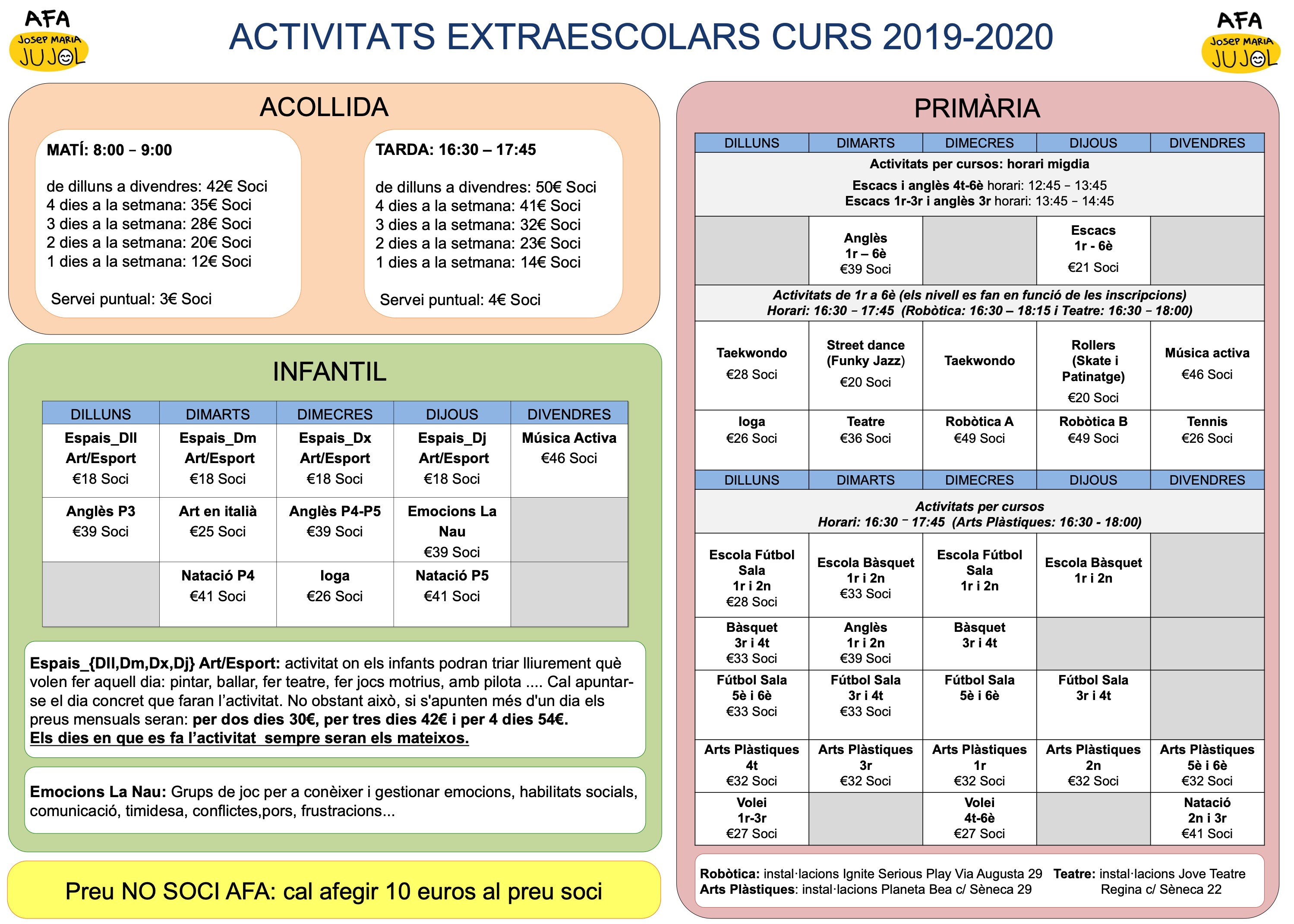 Benvolgudes famílies, ja tenim preparada tota la informació sobre les activitats extraescolars del Jujol del pròxim curs 2019-2020.