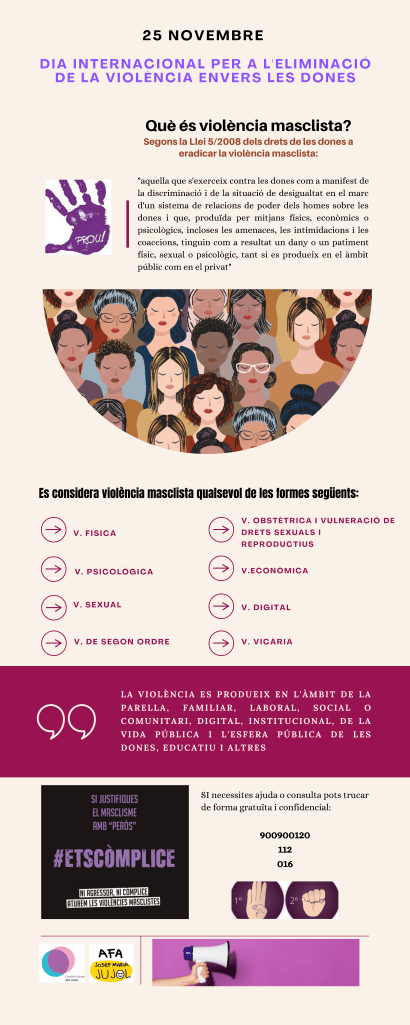 Violència envers les Dones (25N) d’enguany on la Violència de gènere i la violència