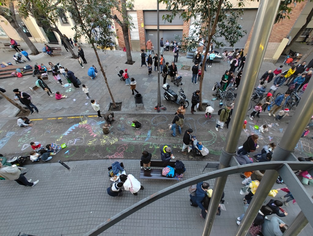 Divendres passat, la Riera de St Miquel es va transformar en un espai segur, tranquil i ple de vida gràcies a la participació de famílies, infants, joves i veïnat que es van unir a l’acció de la Revolta Escolar davant de l’escola.
