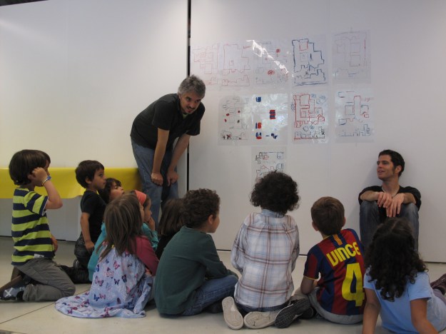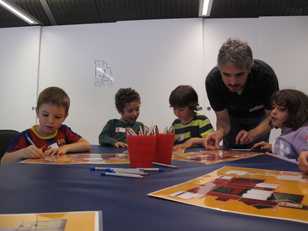 El taller l’impartien els amics d’El Globus vermell, un col·lectiu d’arquitectes que, com ells mateixos expliquen, “té per objectiu fomentar el coneixement de la ciutat i l’arquitectura, entre els no-arquitectes (ja siguin petits o grans) mitjançant la imaginació, la reflexió i el debat”. En aquest cas, es tractava d’una activitat al voltant de l’edifici de la Fundació, de l’arquitecte Josep Lluís Sert.