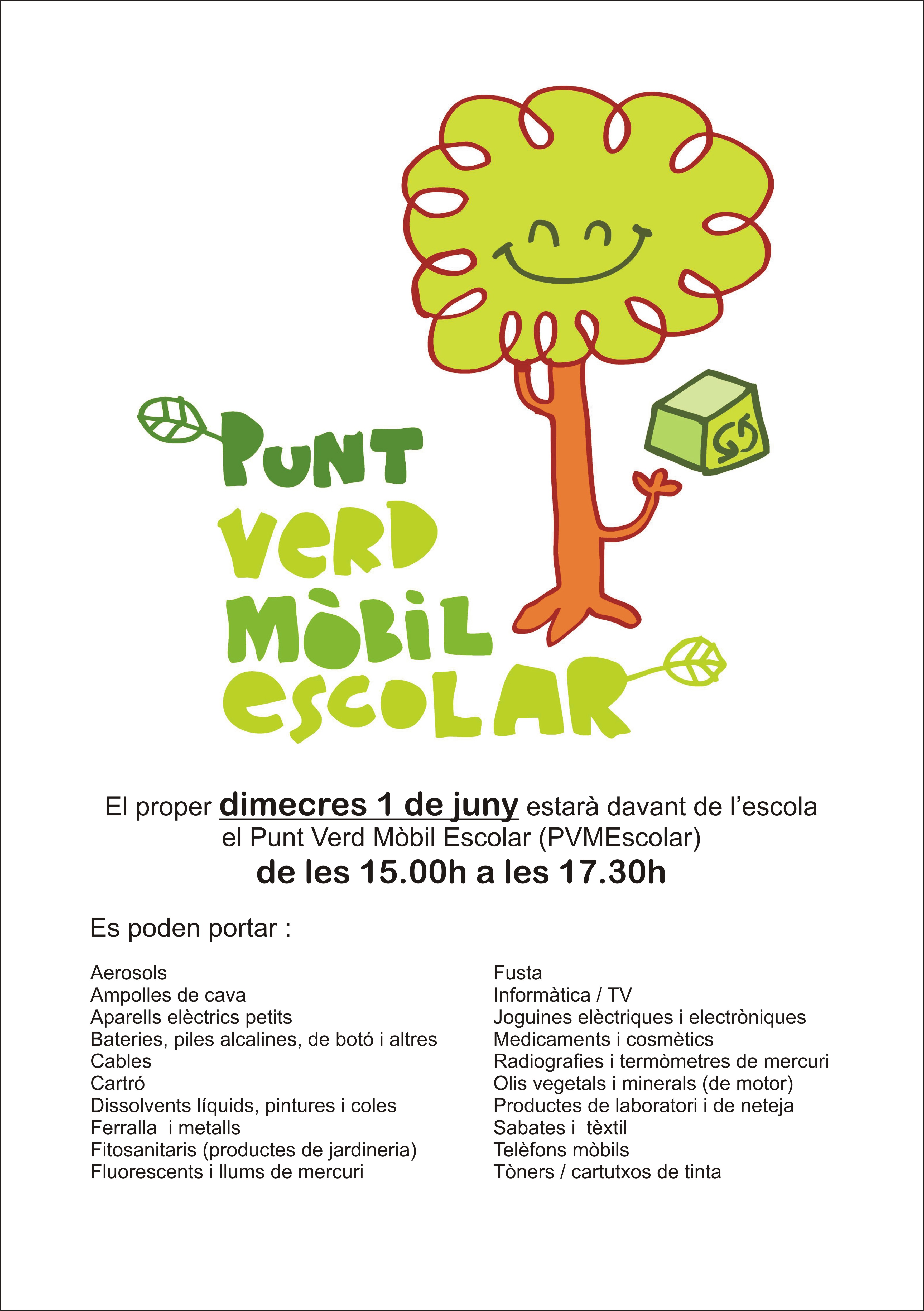 El proper dimecres 1 de juny el Punt Verd Mòbil Escolar (PVMEscolar) estarà davant de l’escola.