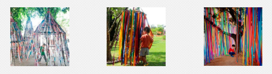 Farem artefactes festius, tipus “refugi”, amb elements reciclats i naturals. A partir de branques, cordes, teles de colors, etc., farem estructures per penjar. L’activitat es realitzarà en forma contínua durant el matí. Cada participant podrà sumar-se quan vulgui, construir el seu propi artefacte o col·laborar en els que altres persones estiguin treballant.