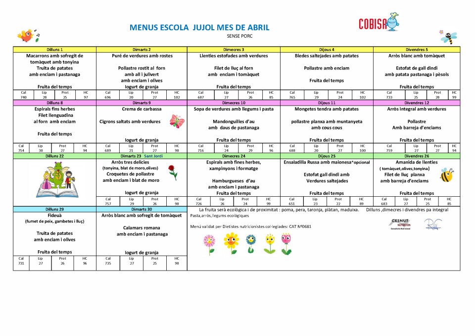 MENU ABRIL 2019 JUJOL SENSE PORC