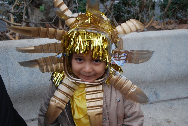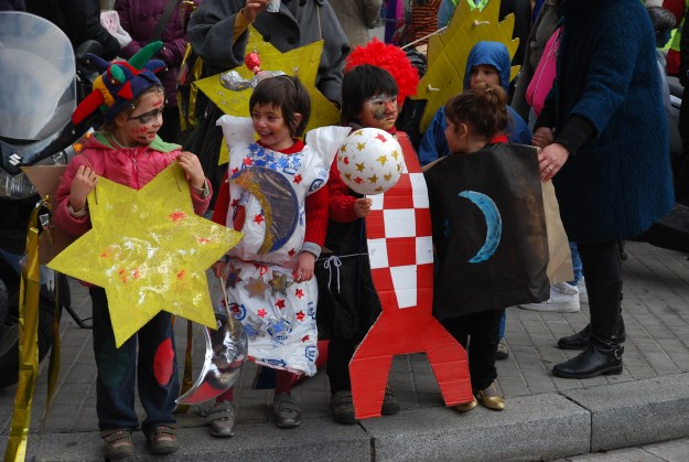 Va ser Carnestoltes i estem molt contents del resultat del concurs. Hem obtingut al premi a la millor AMPA!! Molta gent va anar per lliure, s’havien fet les disfresses de manera individual. Però en realitat el tema i la particularitat de fos amb material reciclat convidava de manera clara a participar d’un col·lectiu per compartir idees i recursos, ganes i il·lusió. Així que uns quants de P5 i de Primer vam fer una crida oberta per participar del projecte en tot el seu procés. Així ens vam reunir les dues setmanes anteriors al dia assenyalat, la GRAN RUA, al menjador de l’escola. Vam treballar colze a colze, grans i petits, amb tot el material reciclat que vam aconseguir i vam anar creant la temàtica de L’UNIVERS. Des d’aquest grup vam intentar que el tema reciclat fos un global, i a partir d’això vam representar el perill i el mal que entre tots directament o indirectament estem fent al nostre MÓN, a la TERRA.