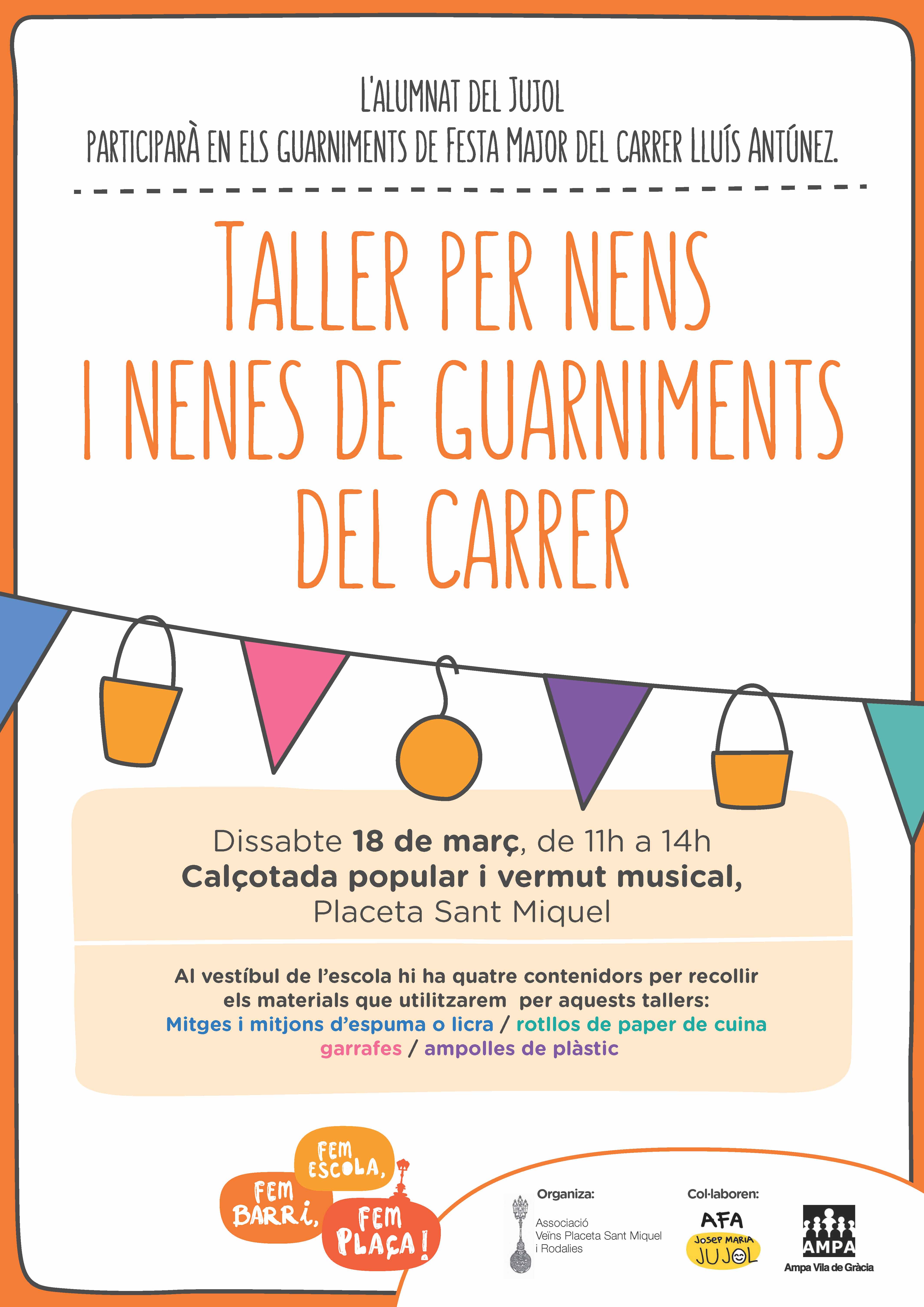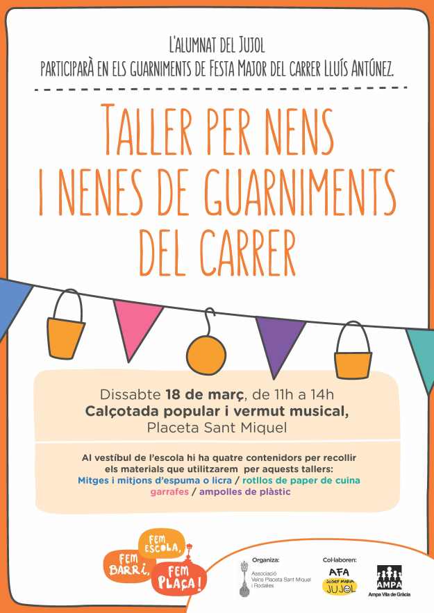 Tots els nens i nenes, pares i mares, podran participar en els guarniments de Festa Major del carrer Lluís Antúnez!