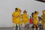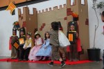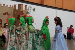 Es podia veure a les cares de tots nosaltres l’expectació que creava. I sí , van sortir a escena els petits actors. Com si d’una escola de teatre es tractés, ens van transportar al món fantàstic de l’edat mitjana, on hi havia un rei, una reina i una princesa al seu castell. Mentrestant els narradors, van anar dinamitzant l’obra per que cada grup de nens i nenes sortís a fer el seu paper; hi eren els nens valents, el nens porucs, el grup d’ovelles i de gallines i el grup de nens amb sacs que portaven aliments al drac . Com no podia ser d’un altre manera, va arribar el moment que va sortir el temut drac i tots els grups van anar passant davant seu com a ofrena per que no es mengés a la princesa. Finalment vàrem veure al príncep amb el seu cavall, que feliçment va rescatar a la preciosa princesa, matant al malvat drac i d’aquella sang que va brollar del drac, va sortir la rosa més vermella que s’ha vist mai, la qual va ser el present del príncep a la seva estimada a princesa.